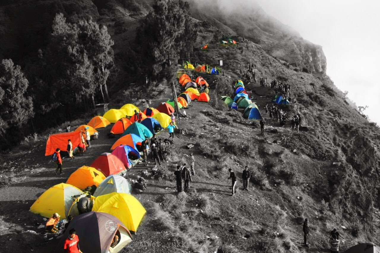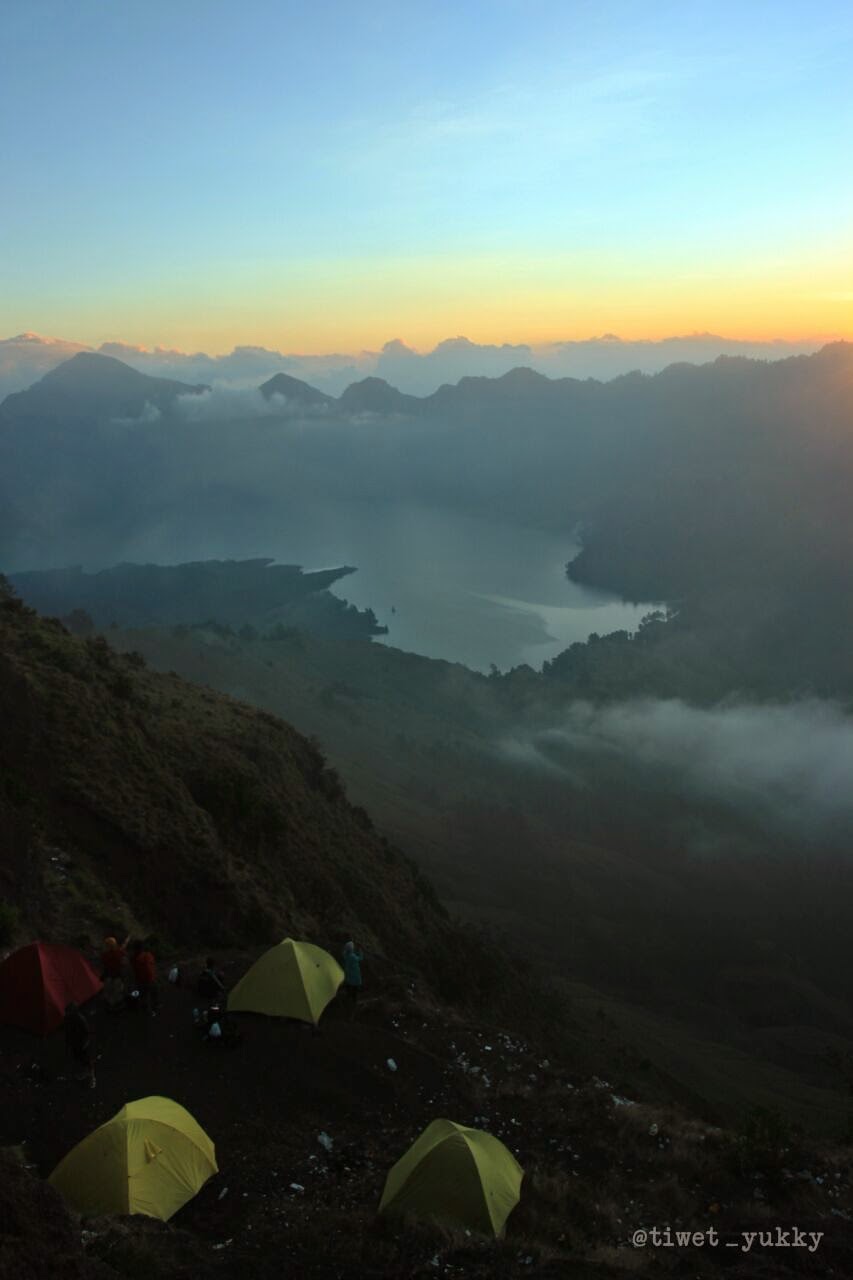 Pukul satu dini hari waktu setempat, Plawangan Sembalun bertabur cahaya dari lampu-lampu kepala para pendaki yang mulai berkumpul diantara tenda-tenda mereka. Dinginnya udara bukan alasan bagi mereka untuk kembali menutup tubuh rapat-rapat dengan sleeping bag yang ngga terlalu hangat. Kecuali saya. (Saya masih ngantuk) L.